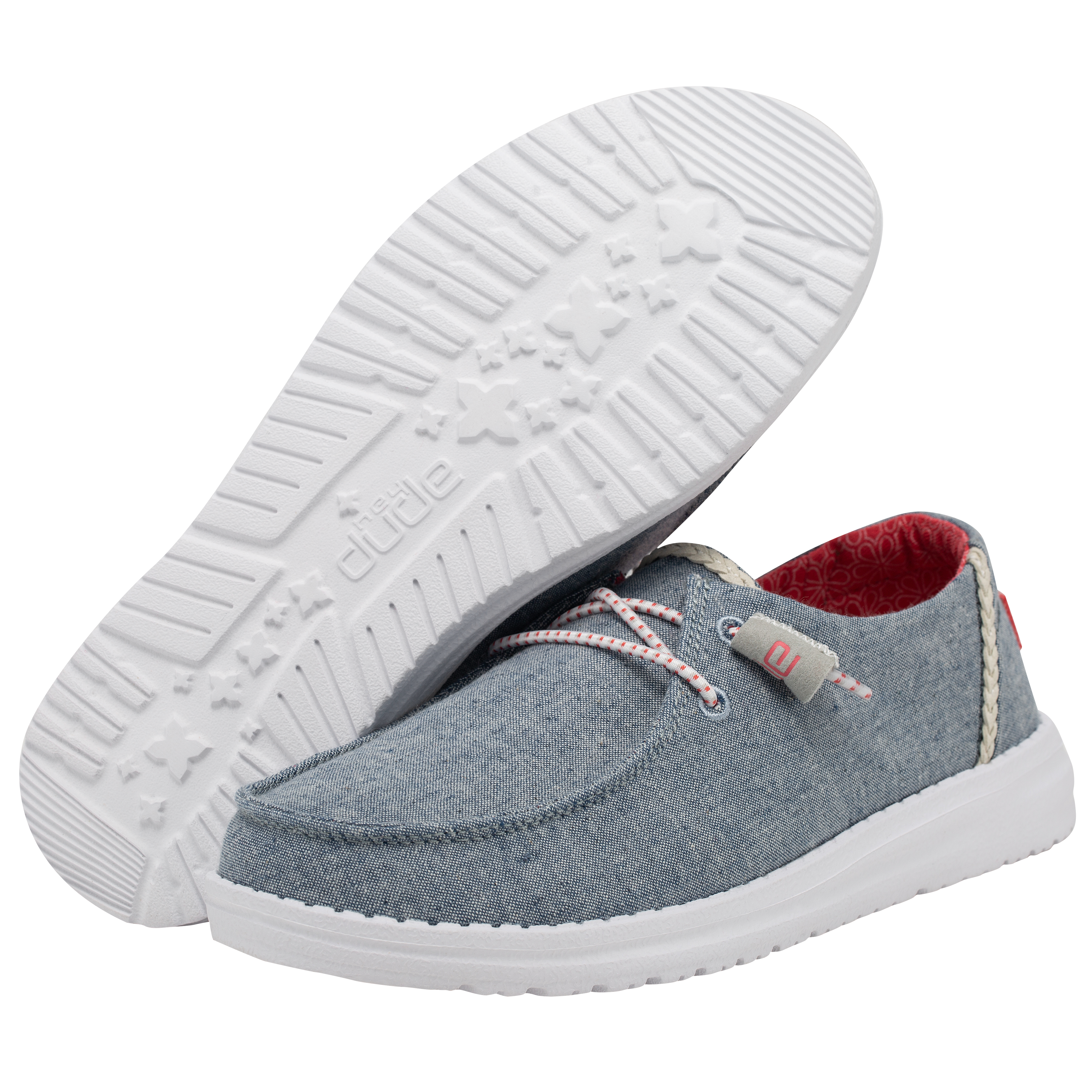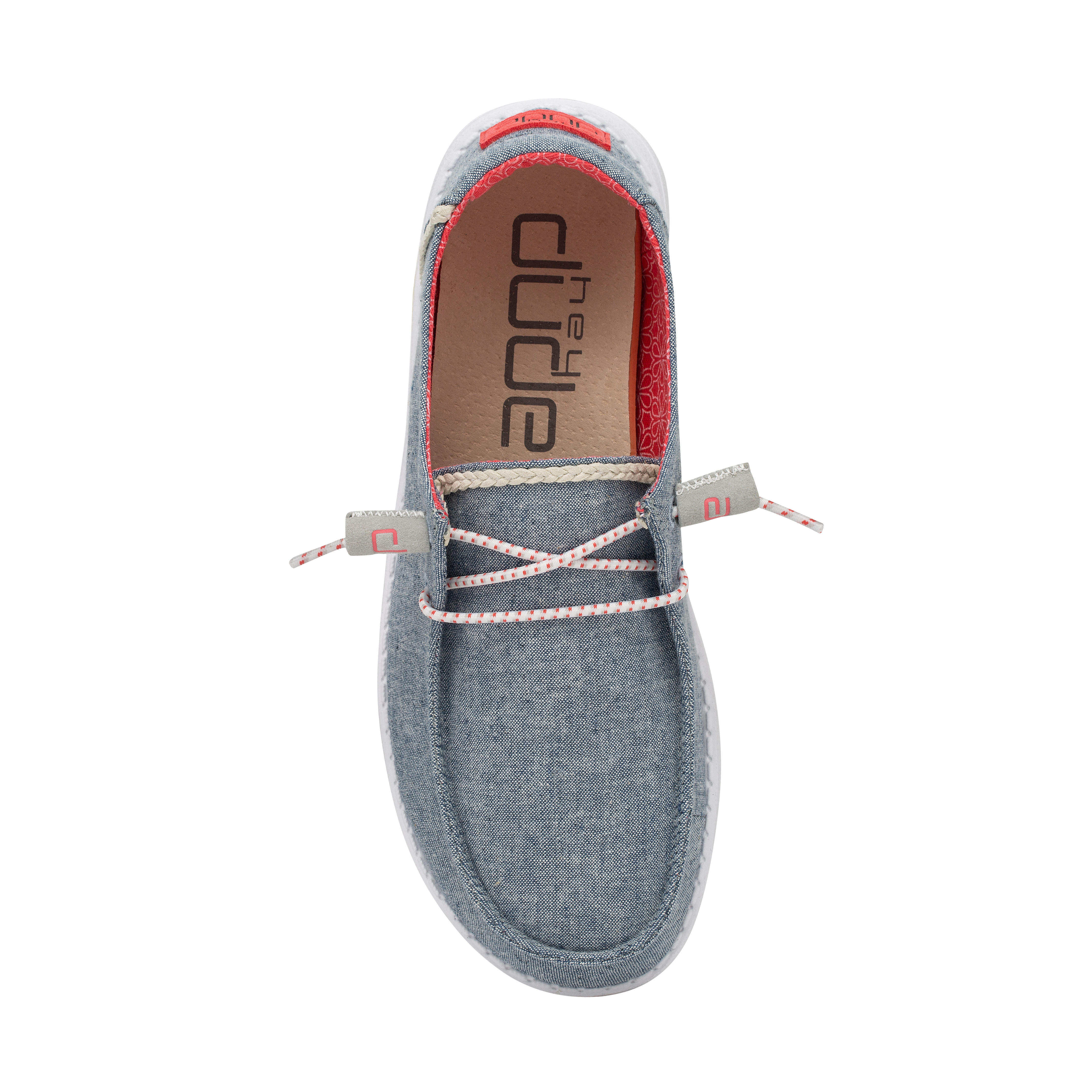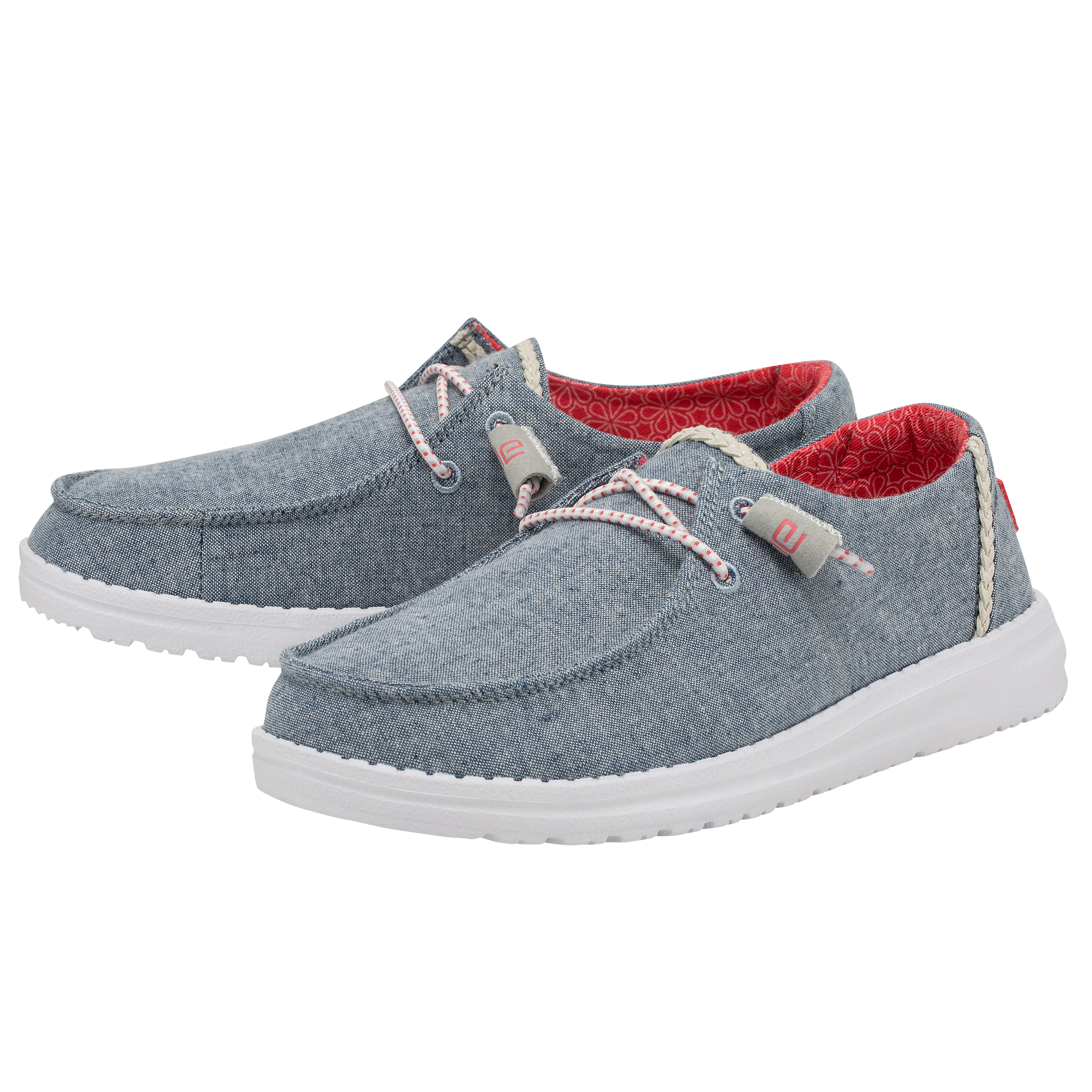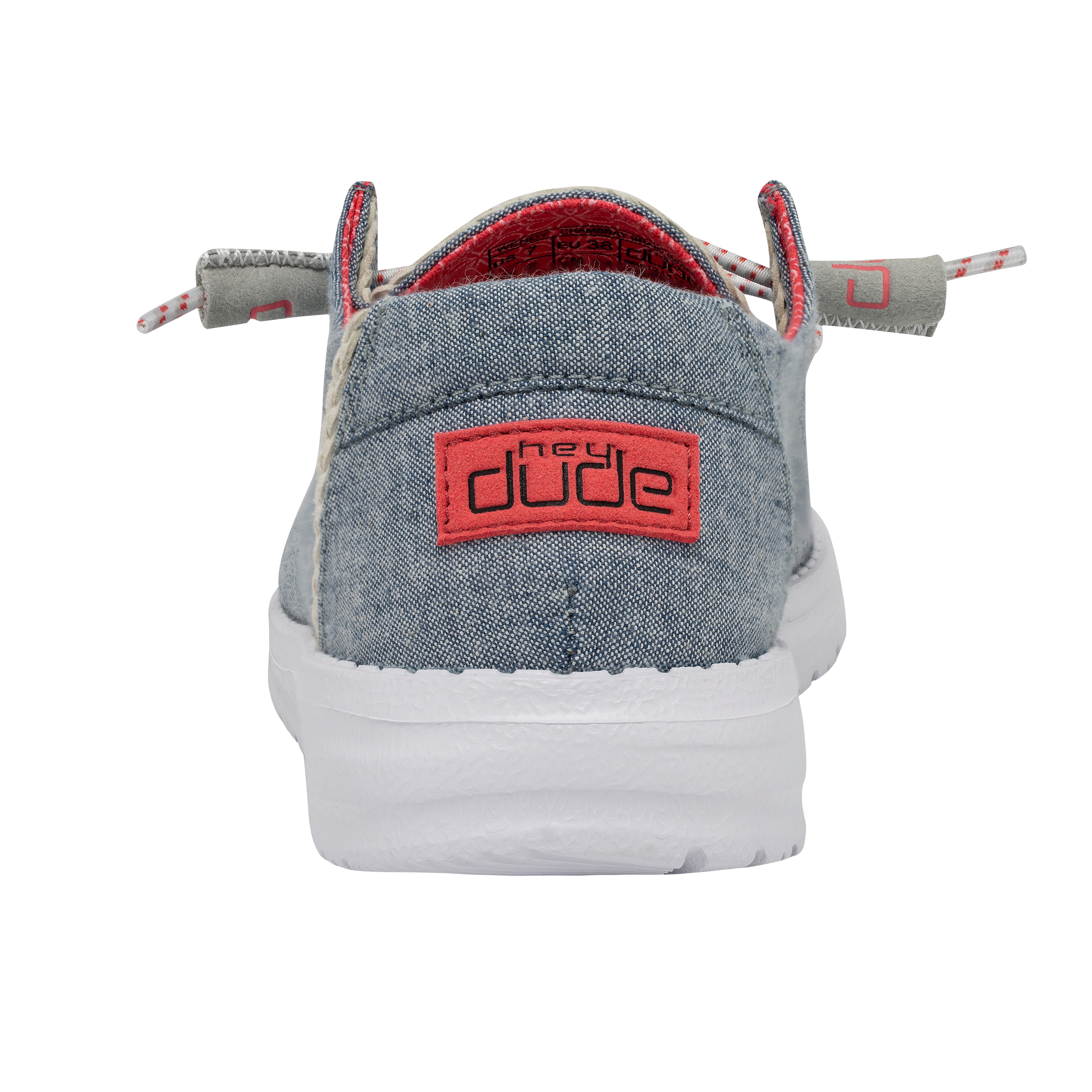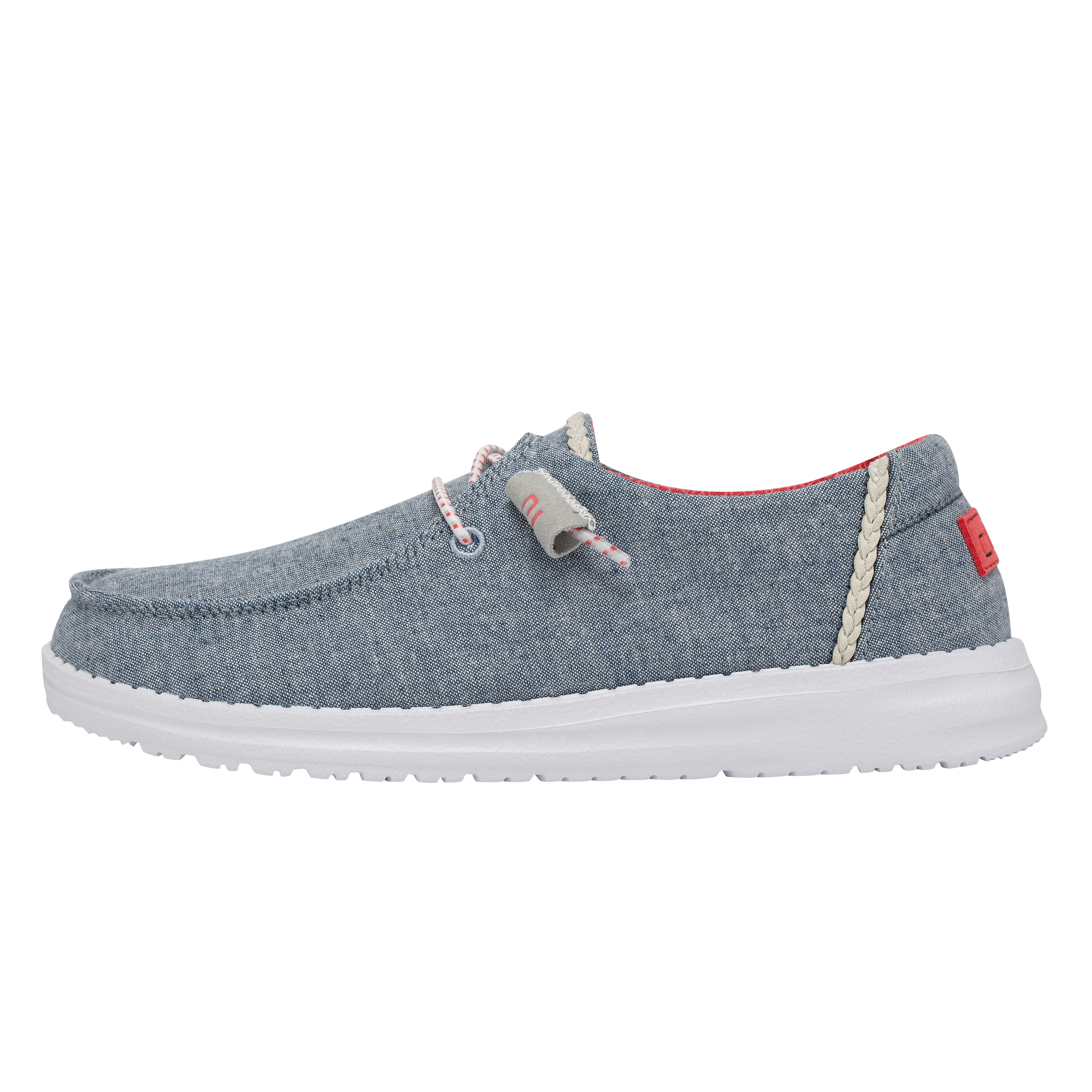 Our most popular moc meets soft chambray-cotton throughout. The Wendy Chambray collection embodies the Hey Dude lifestyle by combining our passion for comfort and quality. Created with a soft, chambray-blend upper, finished off with an easy-on, elastic lacing system and an ultralight outsole for extra comfort. This design is perfect for all day wear.