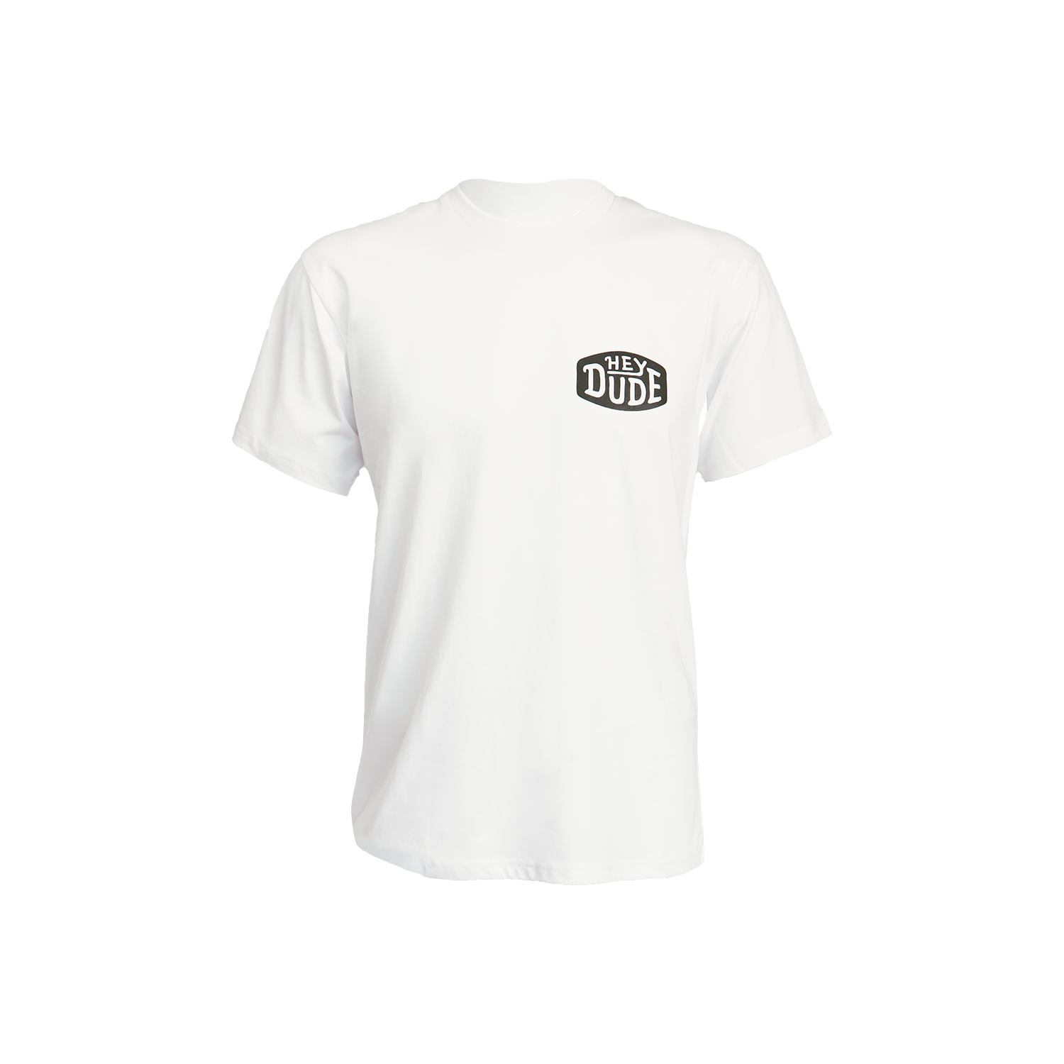 The HEYDUDE badge logo tee features graphics on the Front. Get comfy in our soft cotton tees