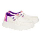 Up your style game with Wendy Peak Chambray Woven. Added, cushy comfort and height meets woven textile heel and webbing details for the perfect mix of comfort and style. So easy to put on you’ll never wanna take ‘em off.